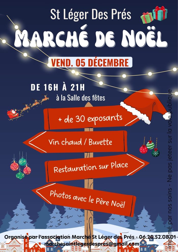 L’association Marché Saint Léger des Prés vous propose son 5e marché de Noël le vendredi 05 Décembre de 16h à 21h (Dans et autour de la salle des fêtes) !