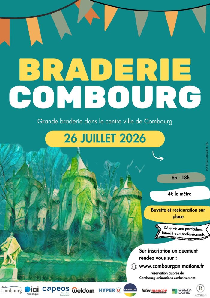 La braderie de Combourg 2026 se déroule dans le centre ville de Combourg de 8 h à 17h30. Comme chaque année, ce sont plus de 400 exposants particuliers qui sont attendus. Les professionnels et revendeurs ne sont pas admis.