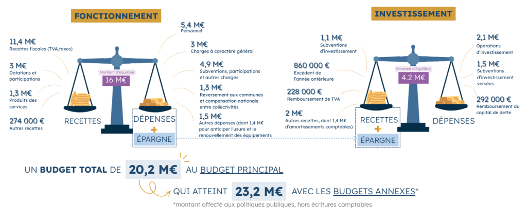 La Communauté de communes vote plusieurs budgets, dont un budget principal et des budgets annexes dédiés à certaines compétences spécifiques (par exemple : eau, assainissement, zones d’activités…).