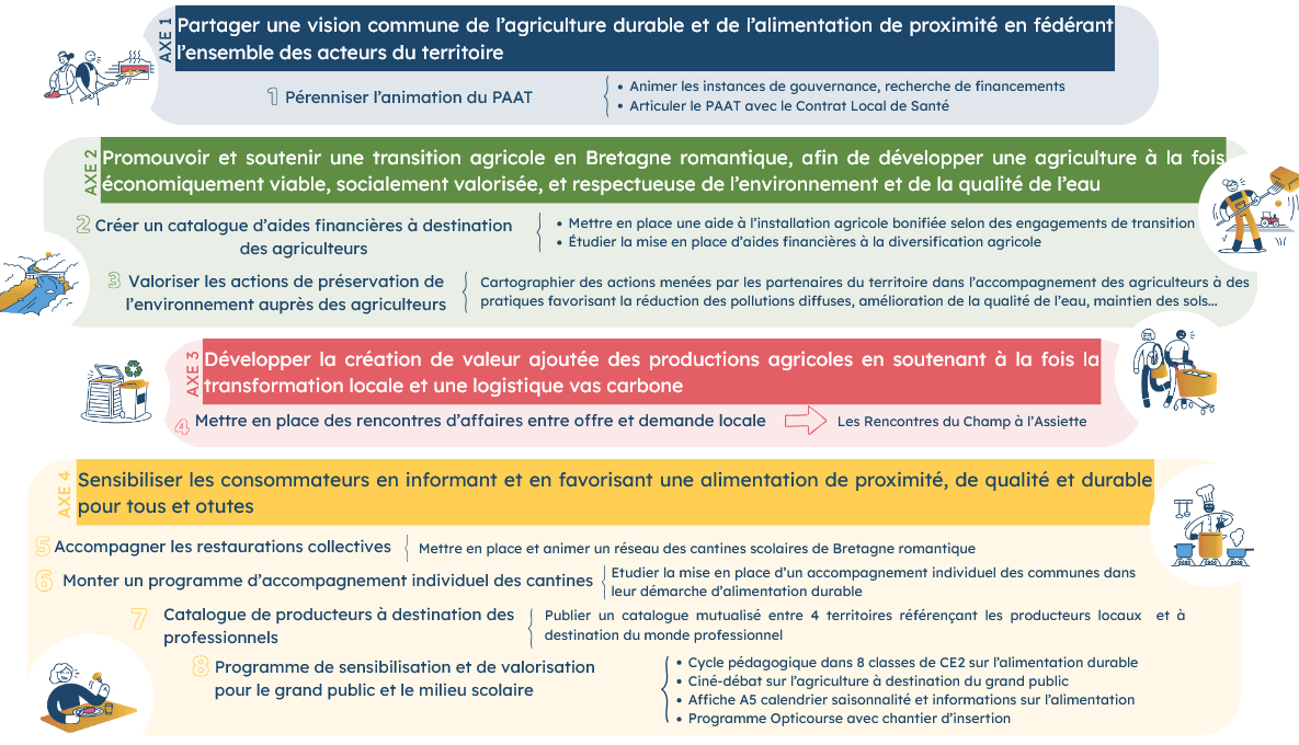 La Communauté de communes Bretagne romantique a obtenu le label PAT en tant que projet émergent en mars 2023 pour une durée de 3 ans. L’objectif de ce PAAT est d’améliorer le système global en favorisant une production et une consommation de qualité, relocalisées, raisonnées et plus vertueuses. (> En savoir + sur le PAAT)