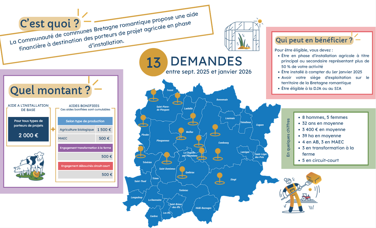 Pour en bénéficier rendez-vous sur : https://entreprendre.bretagneromantique.fr/aide-a-linstallation-en-agriculture/