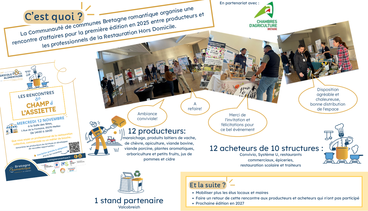 Le mercredi 12 novembre 2025, la Communauté de communes Bretagne romantique et la Chambre d’agriculture de Bretagne ont réuni producteurs et acheteurs du territoire au foyer rural de Meillac.