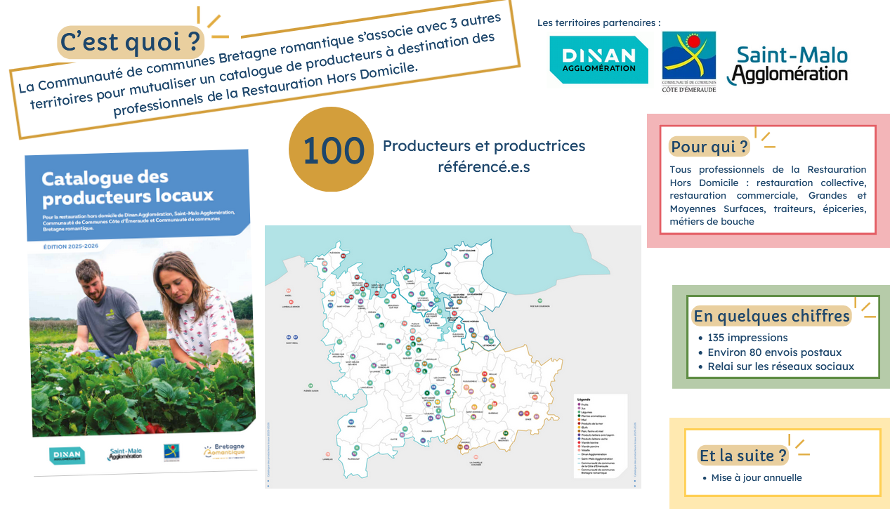 Ce catalogue est destiné à la Restauration Hors Domicile (RHD). Il a été réalisé dans le cadre du PAAT en partenariat avec Dinan Agglomération, Saint-Malo Agglomération et la Communauté de communes Côte d’Émeraude.